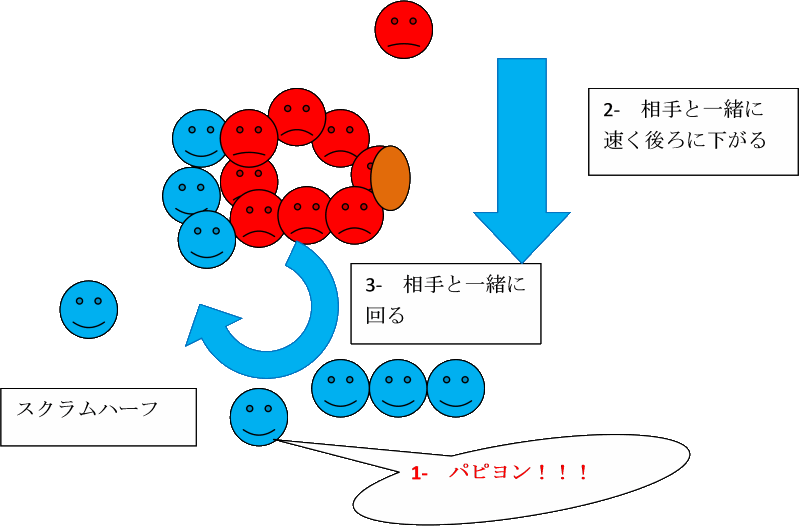 私の小さなクラブではジャンパーにタックルしてはいけない、モールを崩してはいけないというルールがあるので、私たちは相手チームがモールを作ったときあるテクニックを使う。その名は「パピヨン」。蝶という意味です。