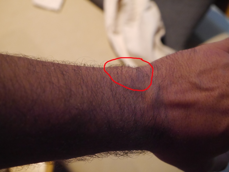 9月13日の岡山大会でタックルの入った時チームメートは同時に入りました。彼の肩は私の手首に当った、骨が大丈夫だったのに軟骨またじん帯は良くないみたいです。27日の練習でバンドをつけたけど、また同じ風に当った急に痛くなりました。練習を止まったけど、当らなかったら大丈夫と思っていました。