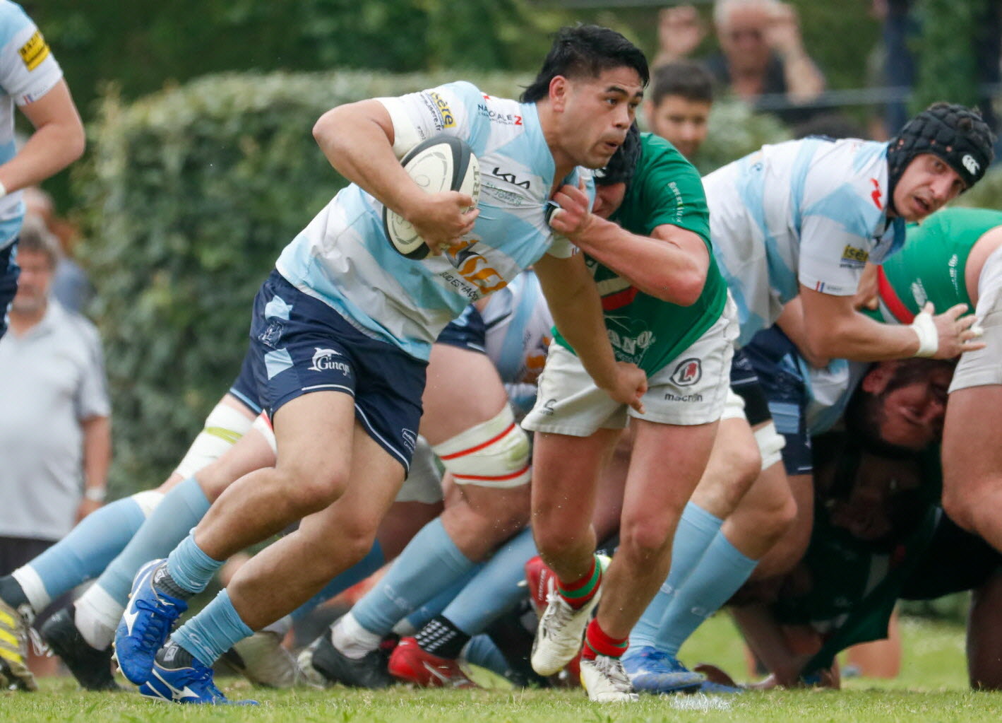 前半では、オーバーニュは激しいディフェンスと身体的な優位性を活かしてペースを作りました。しかし、サルラを振り切ることはできず、彼らは集中力を保ち、規律正しくプレーしました。アルゼンチンの10番、アプリレ(SO、Augustin Aprile、174cm、80kg、アルゼンチン、26/06/1996)は彼の非常に長いキックゲームでもチームに貢献しました。